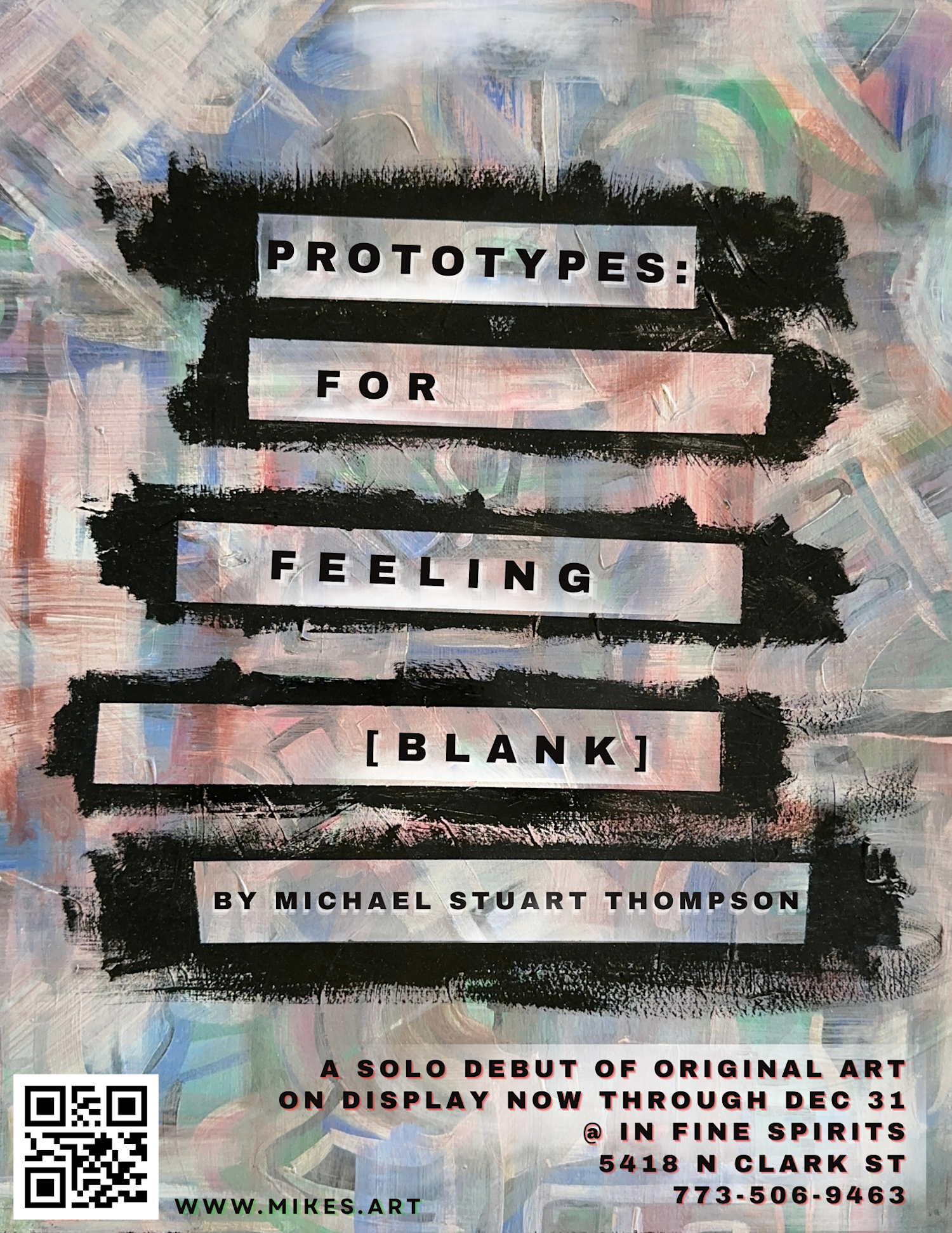 "Prototypes: For Feeling [blank]" is open to the public during business hours at In Fine Spirits, located at 5418 North Clark Street, Chicago.